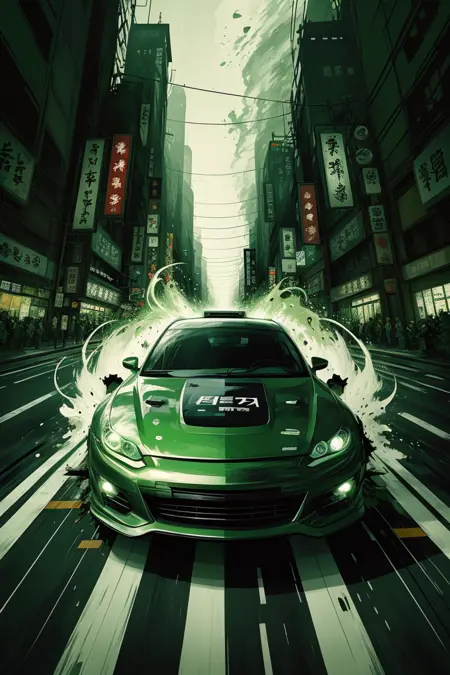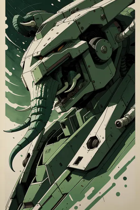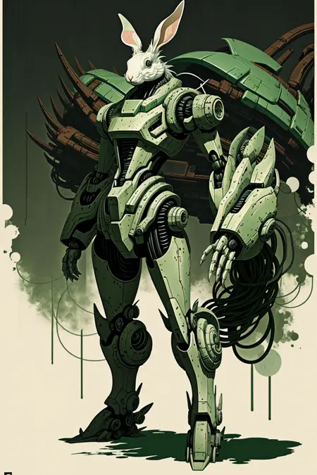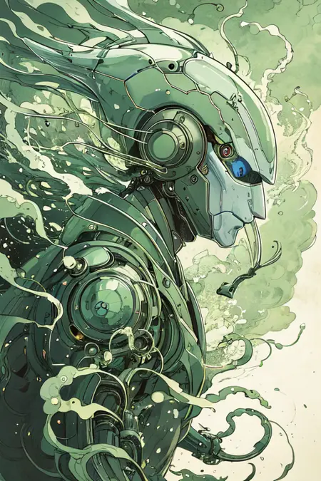 This lora also has powered sub-tokens as: "white background", "green" (careful with this), "cyber/mecha", "flow/flowing" "wind", (again careful), etc.