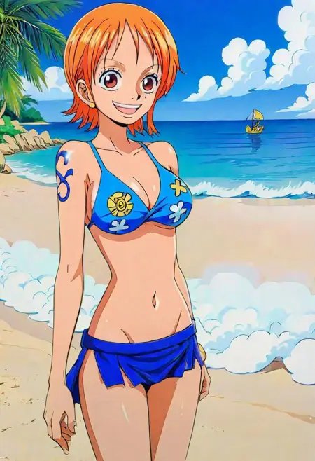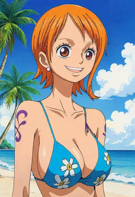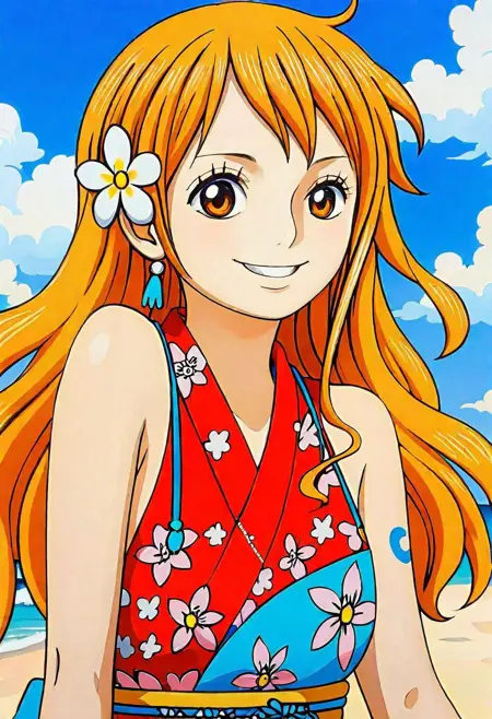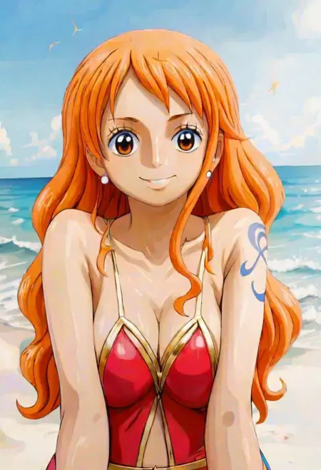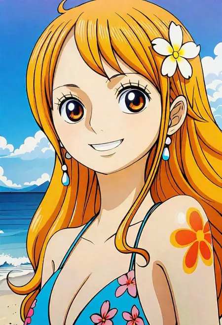 ナミの画像を、昔の短髪バージョンや新しい長髪バージョン、リアリスティックなスタイルやフィギュアなど、さまざまなスタイルで作成してください。キーワードには多くの組み合わせがあります。
