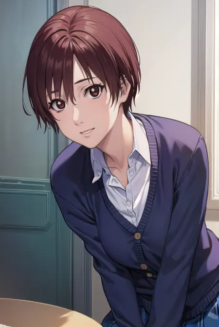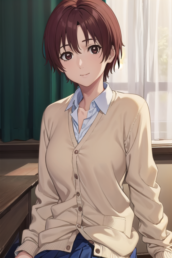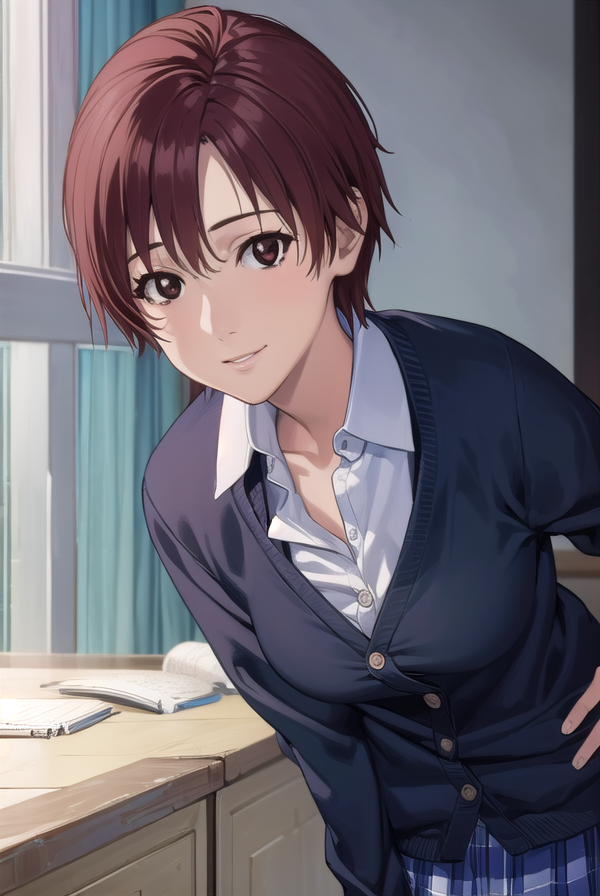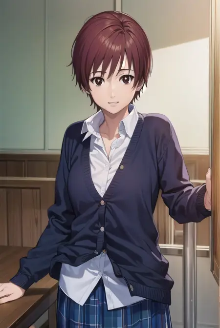 kei kishimoto, short hair, (brown eyes:1.5), red hair,