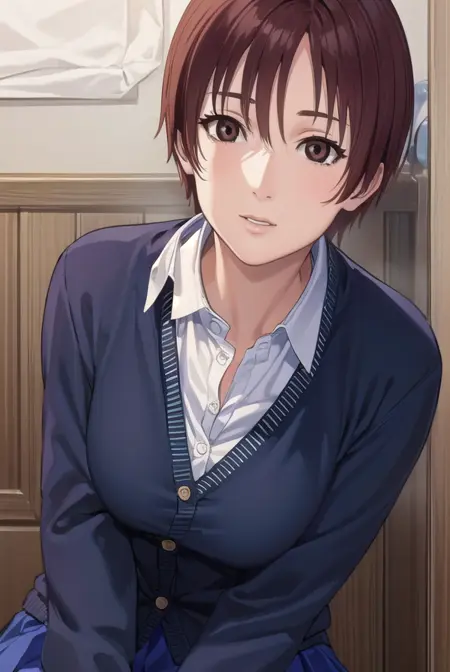 スカート、制服、カーディガン、青いスカート、シャツ、白いシャツ、襟付きシャツ、