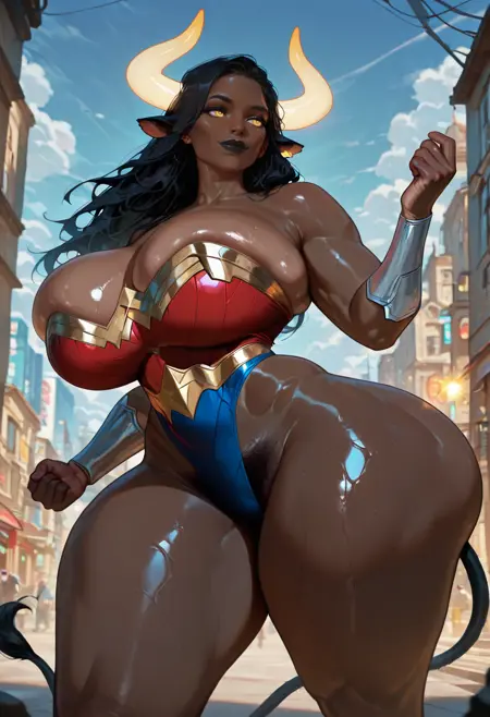 Imara Sunfire is a cow girl, a fighter and a survivor. She lost her tribe early in her life and was raised by a clan of centaurs. Due to her impressive height and strength (ara ara intensifies) she was able to keep up with the taurs, and she managed to fit in nicely.