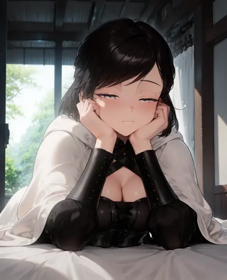 原始服装: Or1gOutf1t,露胸,白色斗篷,束腰,黑色连衣裙,带帽斗篷