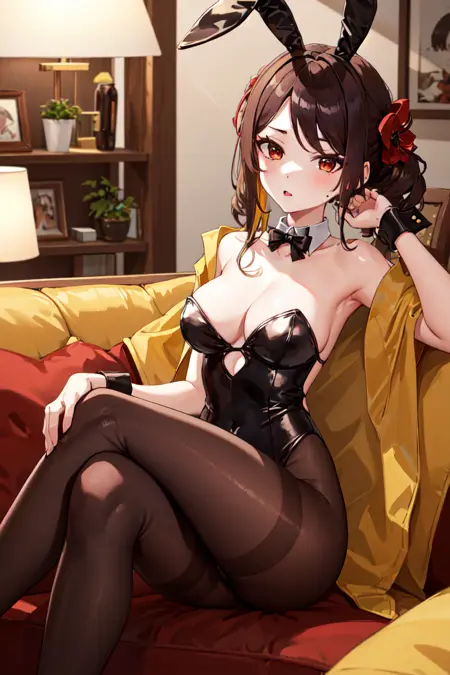 (オプション):髪飾り、長い髪、黒いパンティストッキング
