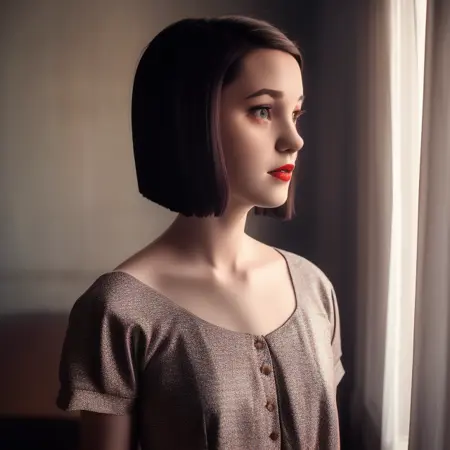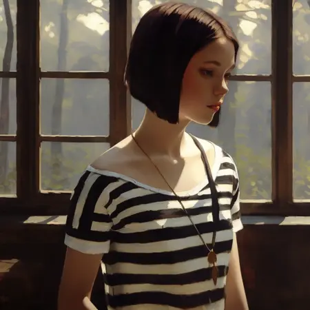 Prompt: 1girl, short hair, striped shirt, classic disney princess, classic disney animation. Seed: 2662942411
