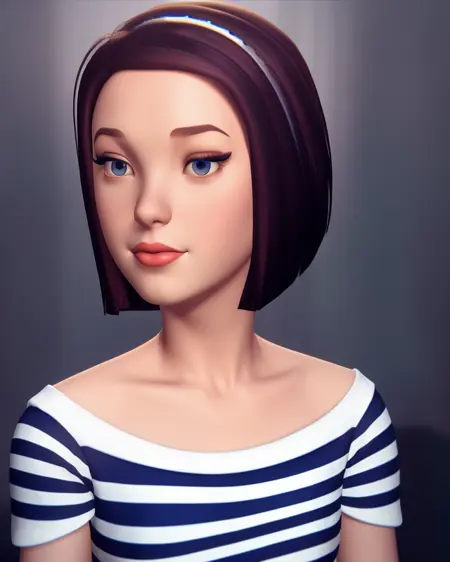 Prompt: 1girl, 3d, short hair, brown hair, striped shirt, portrait, rich fashion style, college, short sleeves. Seed: 2132132619
