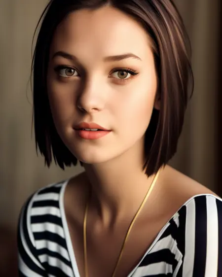 Prompt: 1girl, short hair, brown hair, striped shirt, portrait, rich fashion style, college, Seed: 1145858351
