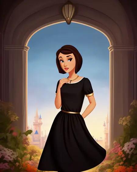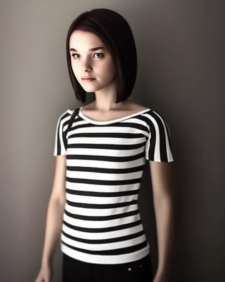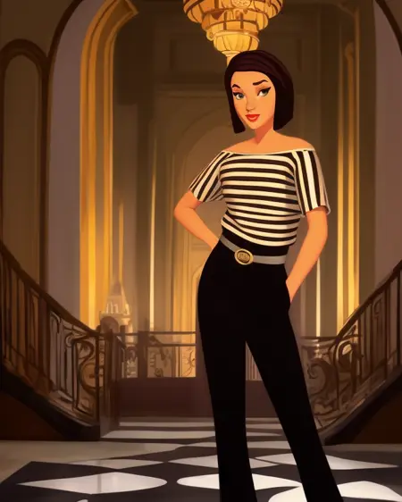 Prompt: 1girl, short hair, striped shirt, classic disney princess, classic disney animation. Seed: 2662942411