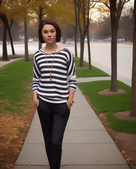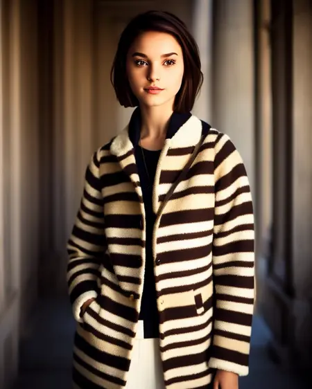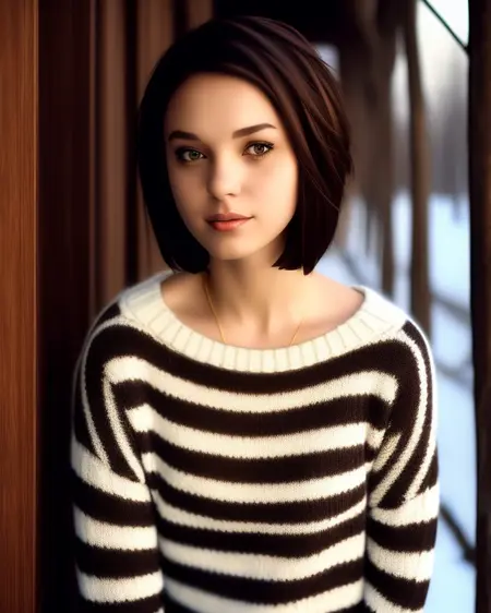 Prompt: 1girl, short hair, brown hair, striped shirt, portrait, rich fashion style, college, Seed: 1145858351