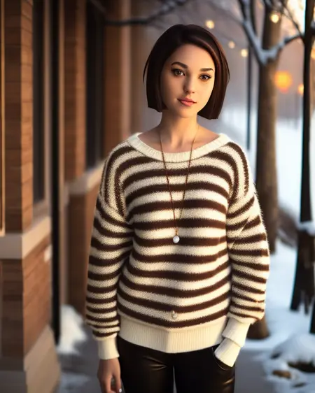 Prompt: 1girl, 3d, short hair, brown hair, striped shirt, portrait, rich fashion style, college, short sleeves. Seed: 2132132619