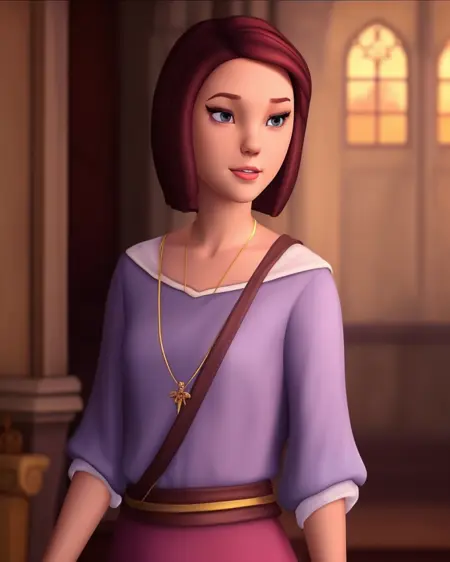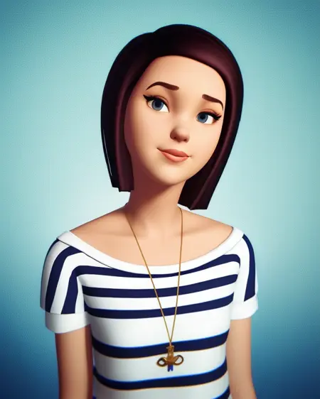 Prompt: 1girl, short hair, striped shirt, classic disney princess, classic disney animation. Seed: 2662942411