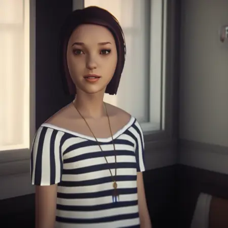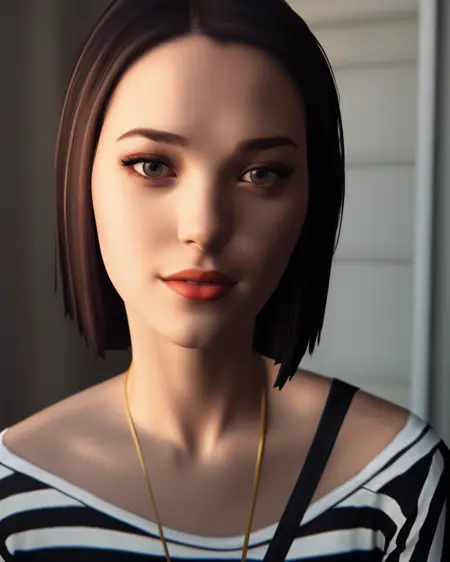 Prompt: 1girl, 3d, short hair, brown hair, striped shirt, portrait, rich fashion style, college, short sleeves. Seed: 2132132619