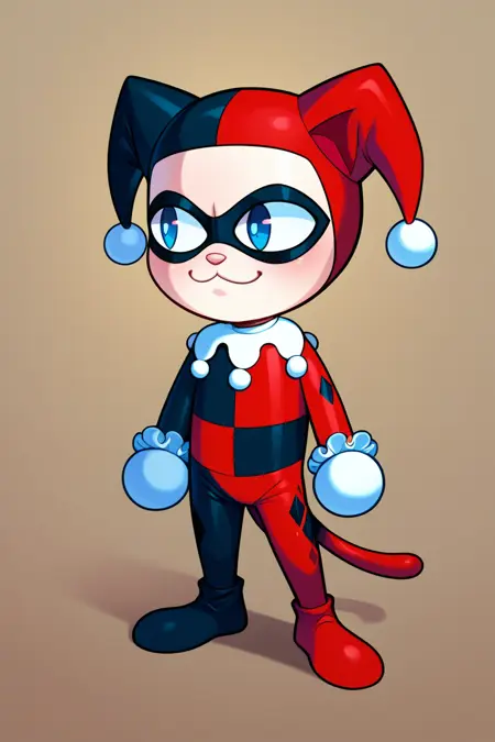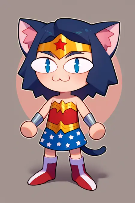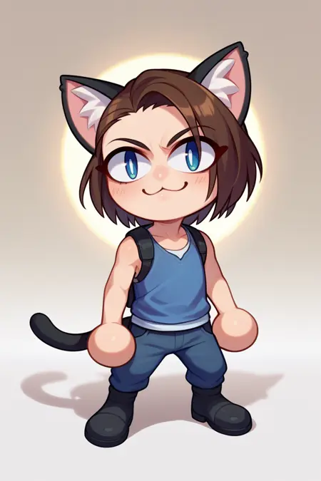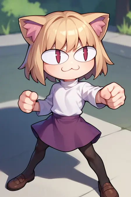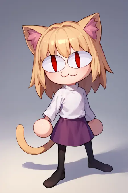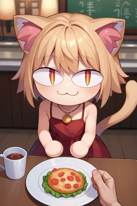 Character Tags: blonde hair, red eyes, slit pupils, cat ears, chibi, :3