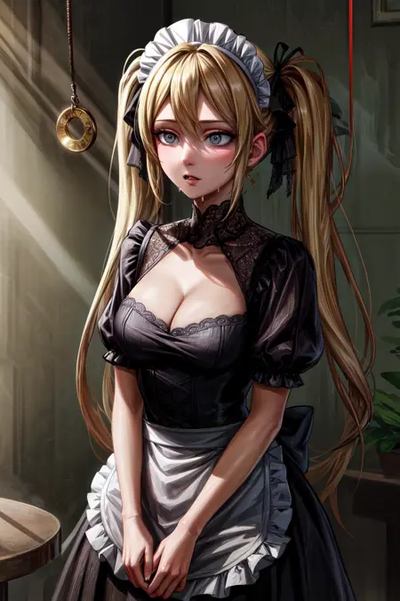 完整示例提示:StSPendulum, (swinging pendulum, coin on string), mature female, ?, ??, ((head tilt), blank stare), (cross-eyed), hypnosis, mind control, gym uniform, open mouth, [drool], [ahegao], arms at sides, facing viewer, blue hair, green eyes, medium breasts, locker room, highres, absurdres, masterpiece, best quality, ultra-detailed, illustration,colorful, masterpiece, best quality, ray tracing, 4k, (extremely detailed), soft lighting, tracing, soft shadows, detailed face, <lora:StS-Hypno-Pendulum-Coin-Iter5:0.6:1.0>, <lora:more_details:0.4>, <lora:add_detail:0.4>("StSPendulum" 是我的激活标签,非必需)。