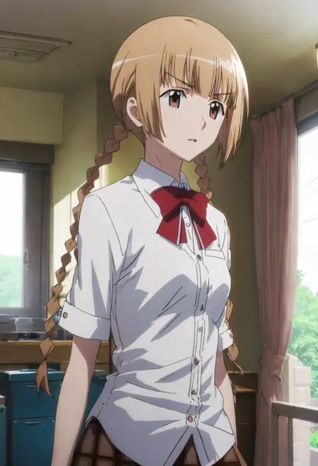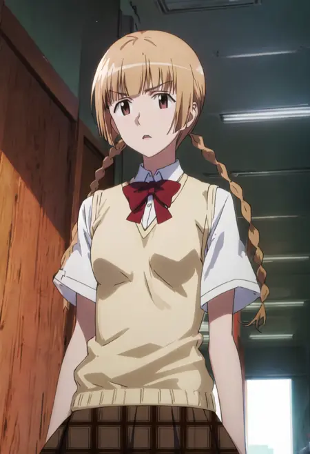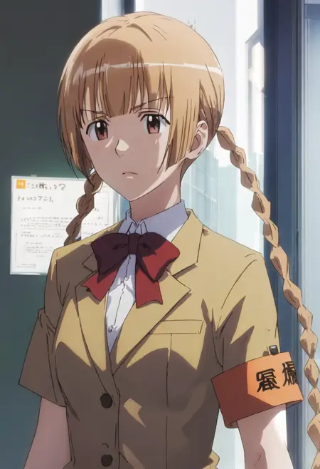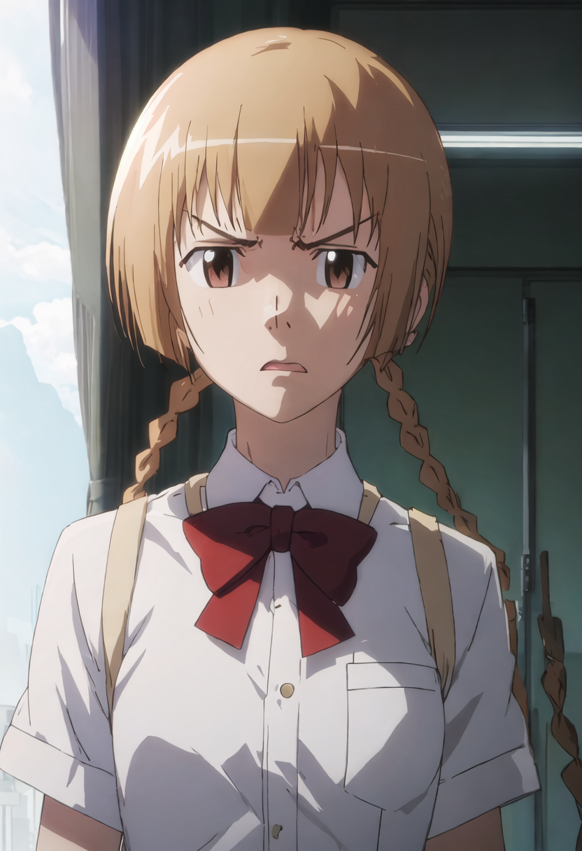 The trigger word is igarashi_kaede_seitokaiyakuindomo, and the pruned tags are brown_hair, braid, twin_braids, long_hair, brown_eyes, bow. When some features (e.g. hair color) are not so stable at some times, you can add these them into your prompt.
