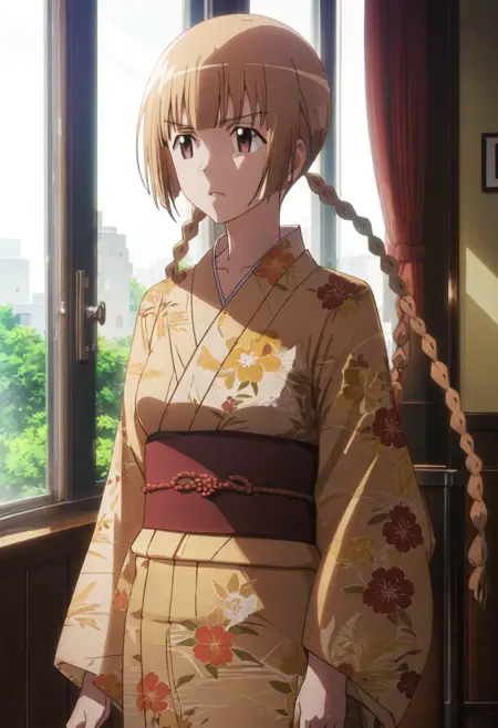 The pruned character tags are brown_hair, braid, twin_braids, long_hair, brown_eyes, bow. You can add them into prompts when core features (e.g. hair color) of character is not so stable.