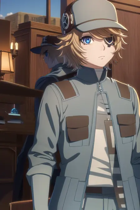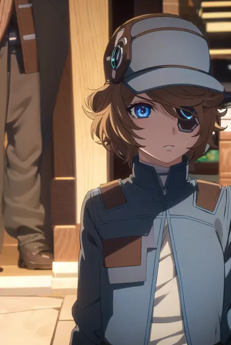 hacker, blue eyes, brown hair, male focus, (eyepatch:1.5),