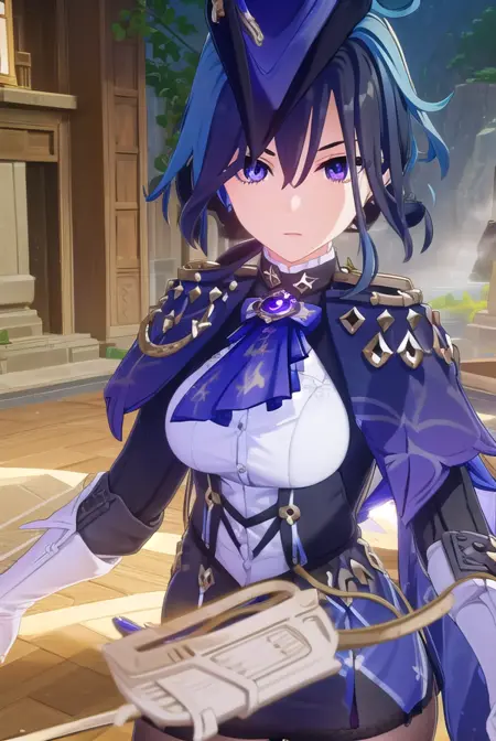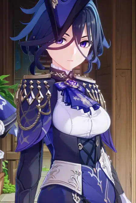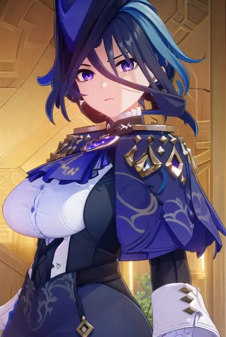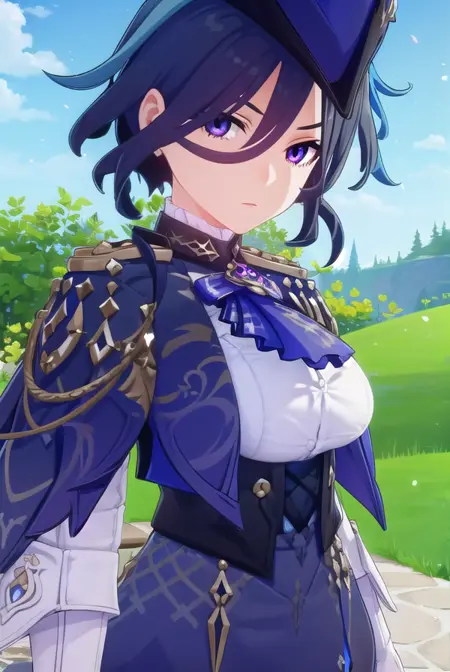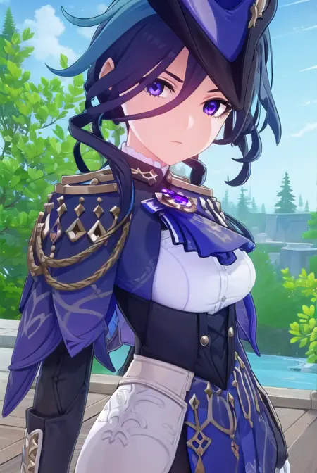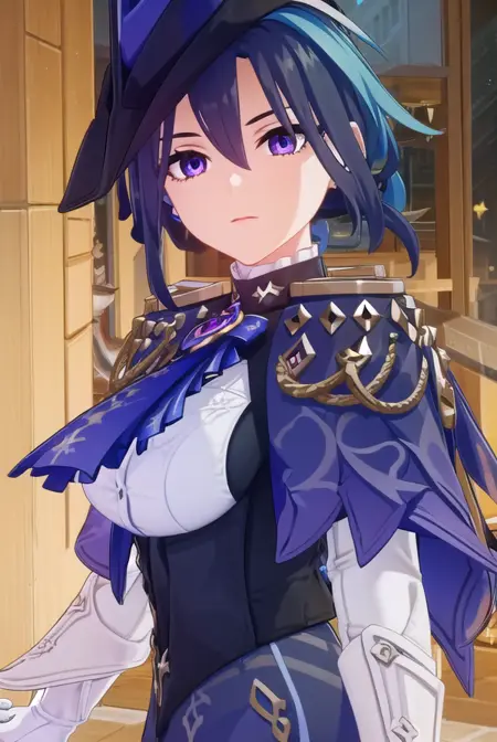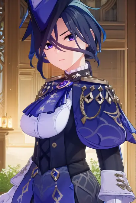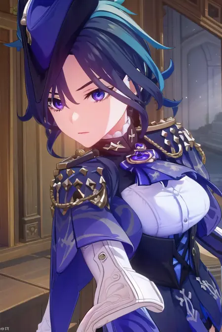 clorinde,蓝发,(紫眼:1.1),短发,挑染发,