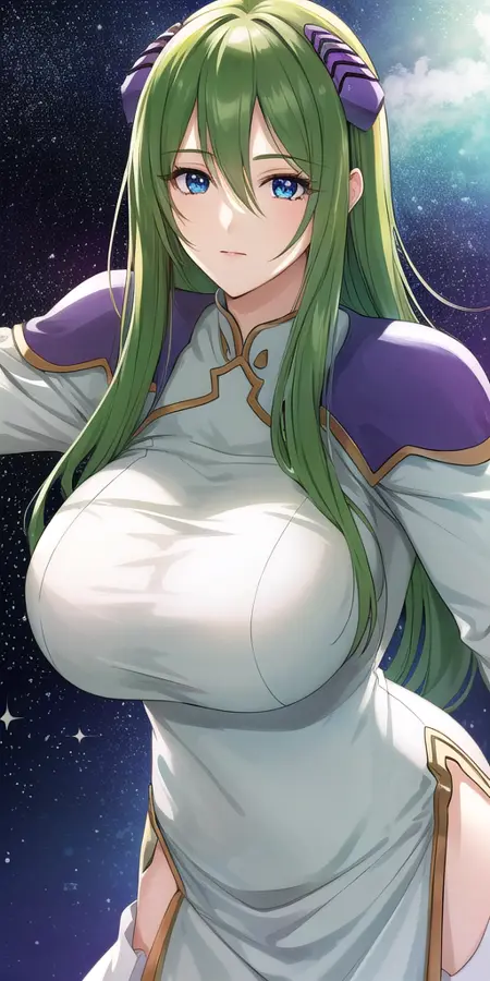 저는 대부분의 테스트 이미지를 0.7에서 진행했지만, 가끔 머리카락 색이 꼬이곤 했습니다. 그래서 0.8이 더 정확하며, green_hair 태그를 추가해도 됩니다. 그녀의 립스틱 색상은 확신할 수 없는데, 데이터셋에서는 때로는 분홍색, 때로는 붉은색, 혹은 보라색으로 나타나므로, 저는 모두 정리하고 기계의 랜덤성에 맡겼습니다. 그러나 원하시면 색상을 바꾸는 데 충분히 반응합니다.