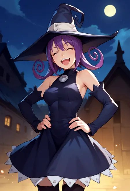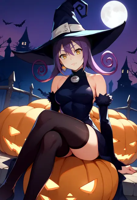 Default Outfit: witch hat, black dress, detached sleeves, black thighhighs