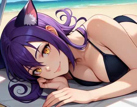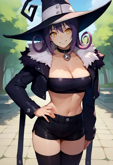 Add purple hair and yellow eyes if necessary. You can remove her witch hat and swap it out for cat ears.