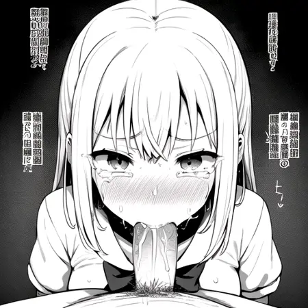 Tags: poncocchan, 1girl, fellatio, irrumatio, penis, blush, tears, nipples, solo focus, large breasts, ponytail, cum, closed eyes, skirt, cum in mouth, deepthroat, pov