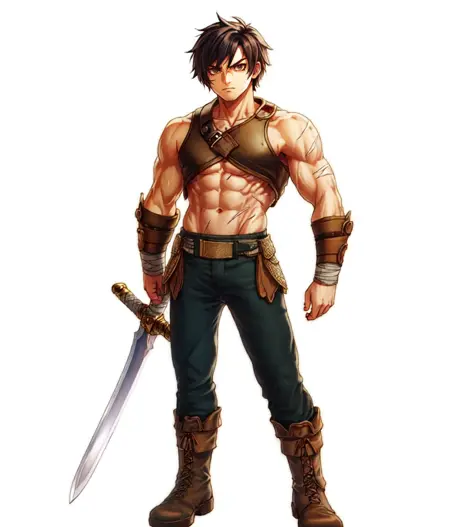 "masterpiece, white background, simple background , standing, full body, 1boy, solo,"+whatever stuff you want.