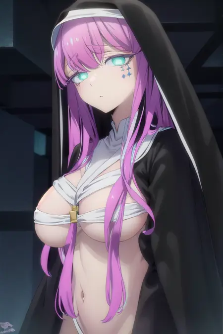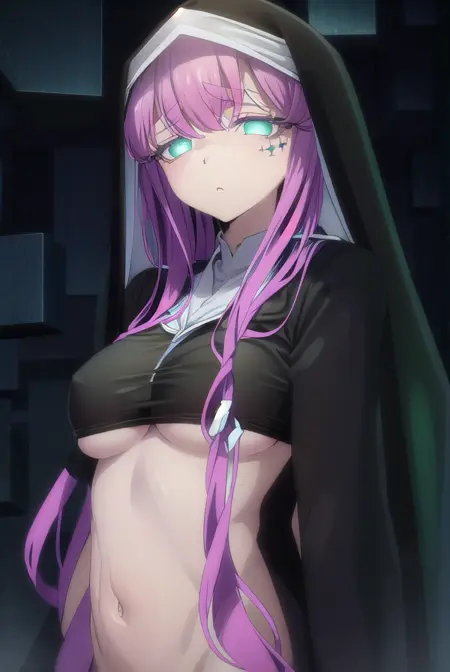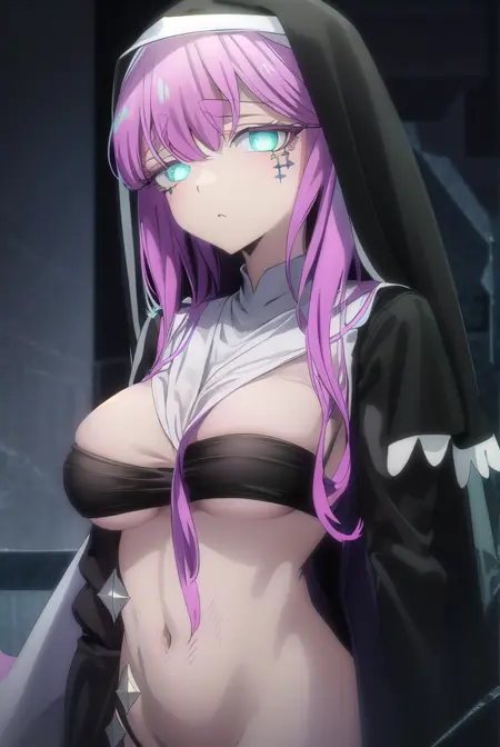long sleeves, dress, black dress, underboob, veil, nun, habit,