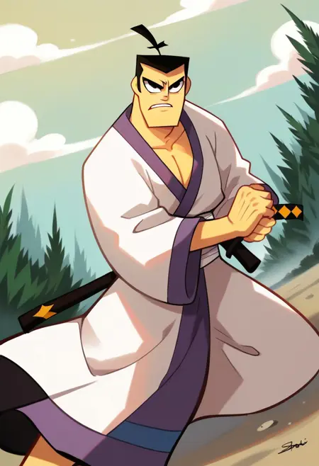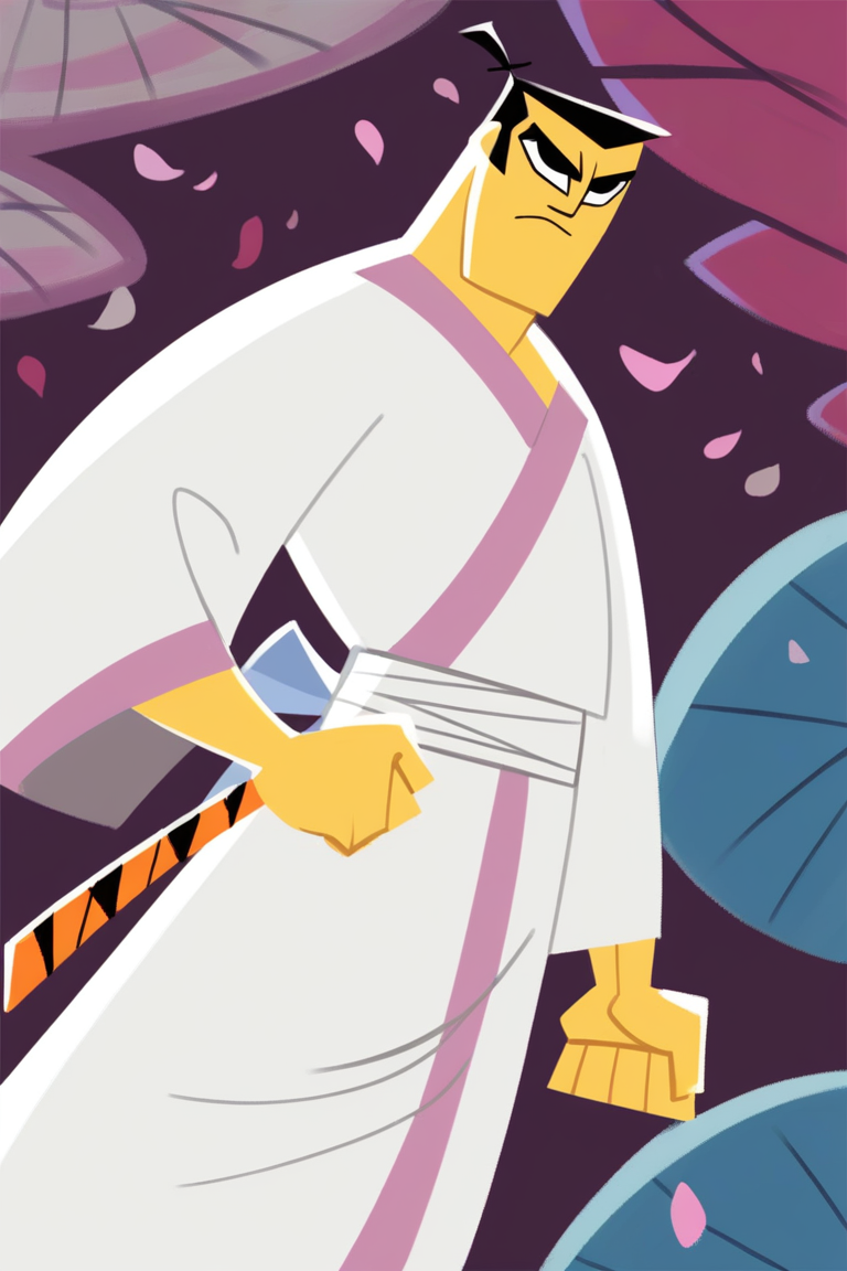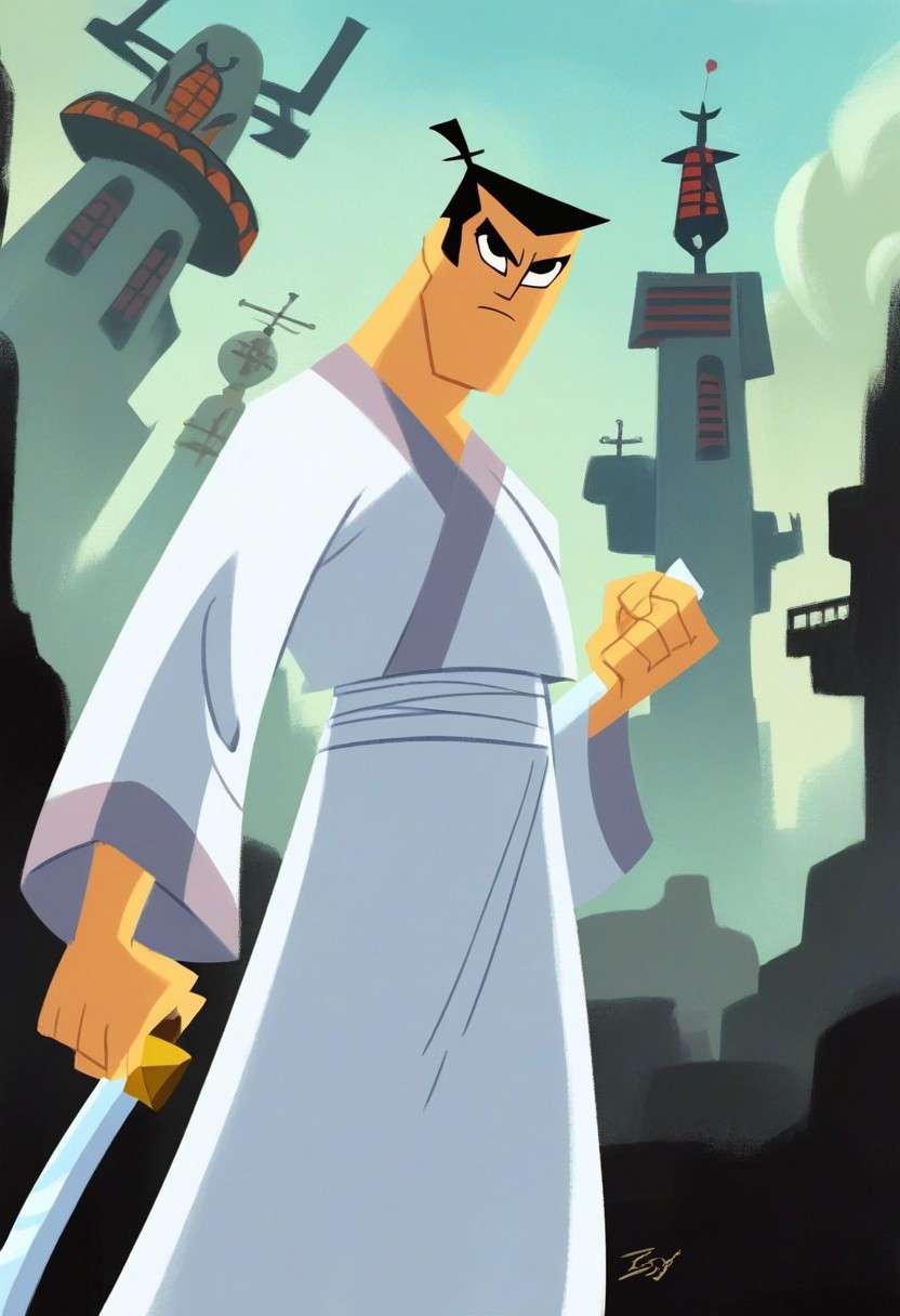 source_cartoon \(Samurai Jack\), cartoon coloring, 2d, flat, fine art parody