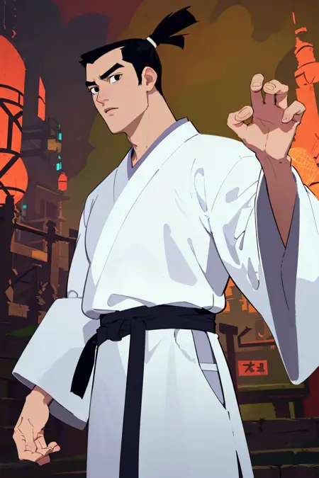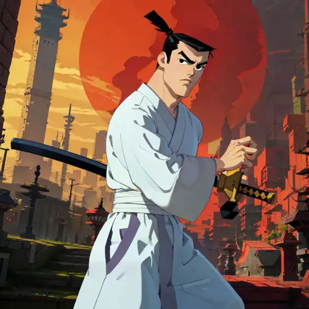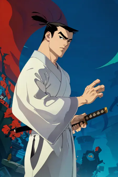 source_cartoon \(Samurai Jack\), cartoon coloring, 2d, flat, fine art parody