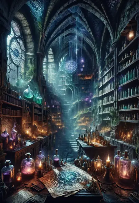 Crystal balls, tarot cards, skulls, candles, and ancient tomes can be placed within scenes or associated with subjects to reinforce the theme. Buildings might feature gargoyles or architecture reminiscent of Gothic cathedrals.