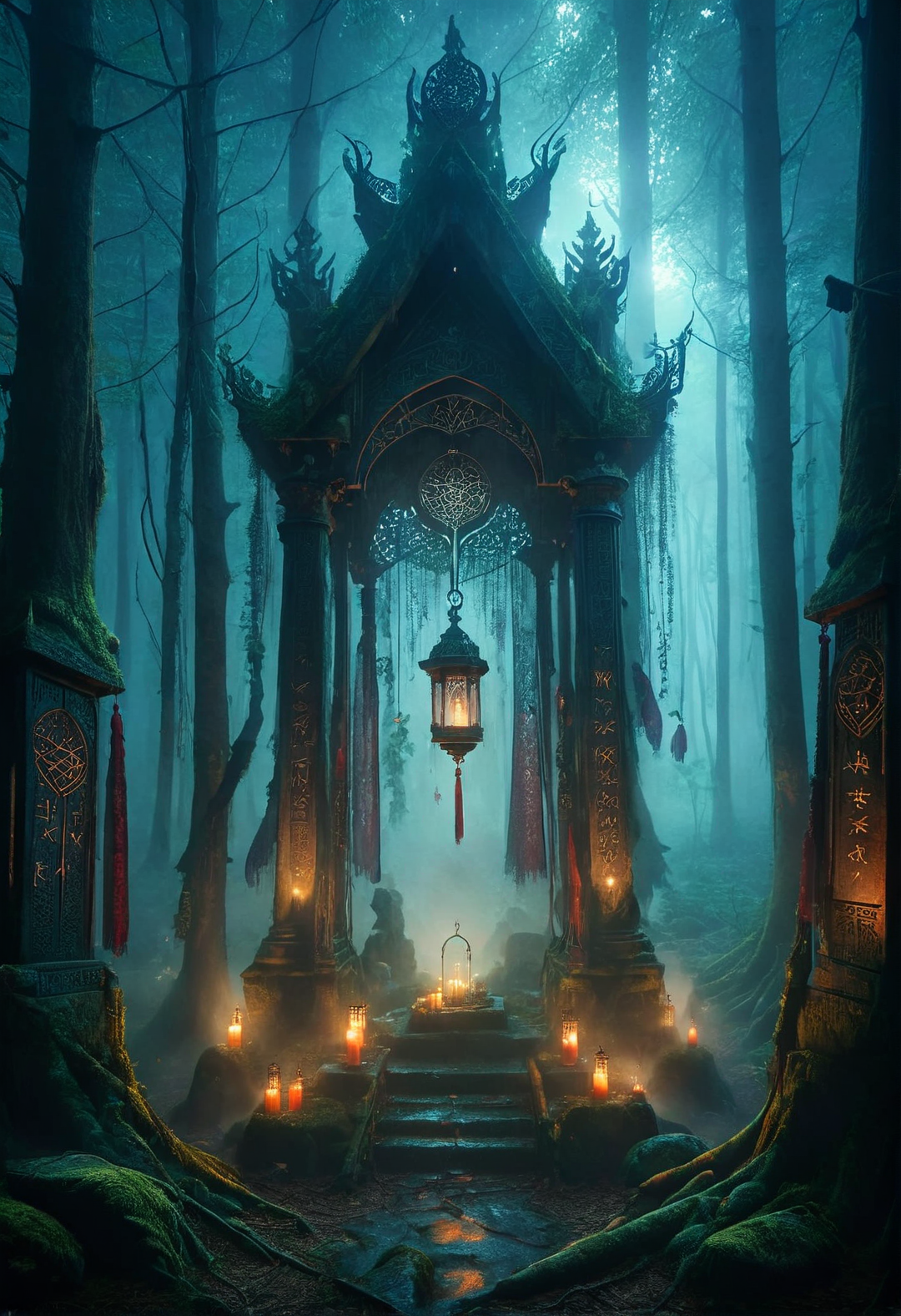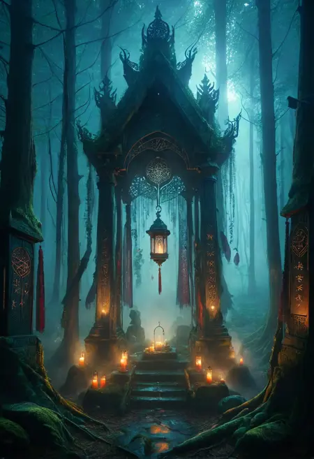 When incorporating humans or animals, consider adding subtle transformations or unusual features—eyes that glow unnaturally, shadows that seem to move independently, or characters adorned in elaborate, ceremonial garb. Animals might be reimagined as familiars with mystical markings or unusual intelligence.