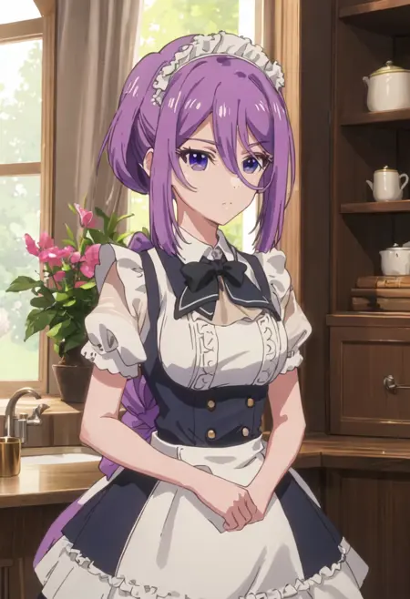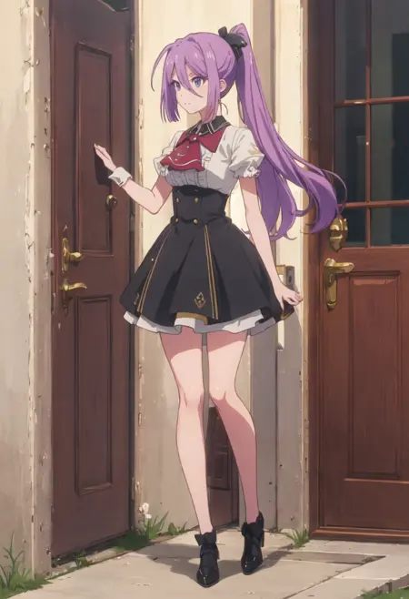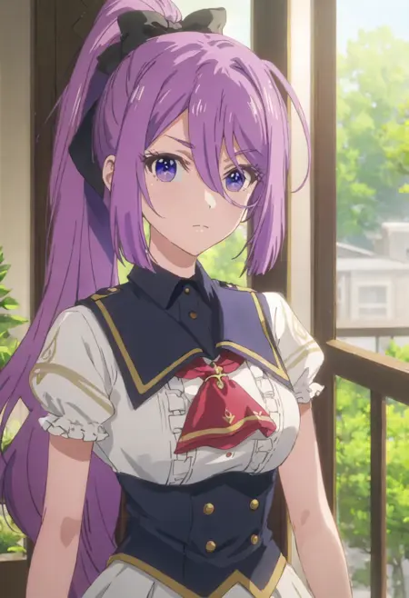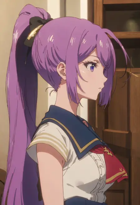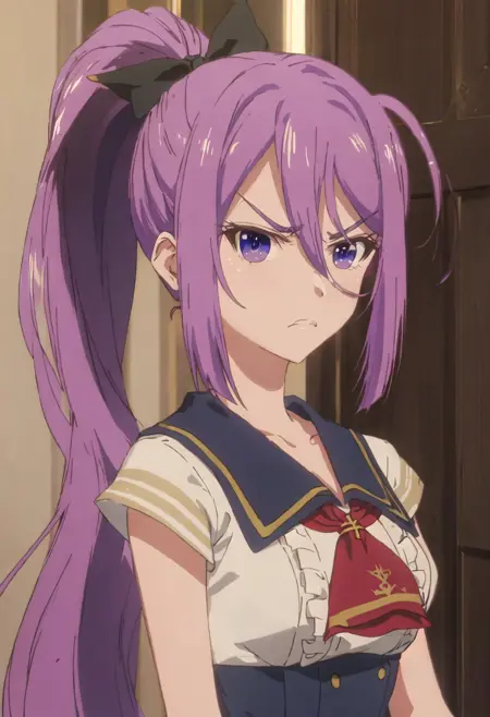 - 精简后的角色标签为:purple_hair、long_hair、hair_between_eyes、ponytail、purple_eyes、bangs、bow、hair_bow、very_long_hair。当角色的核心特征(如发色)不够稳定时,您可在提示词中添加这些标签。