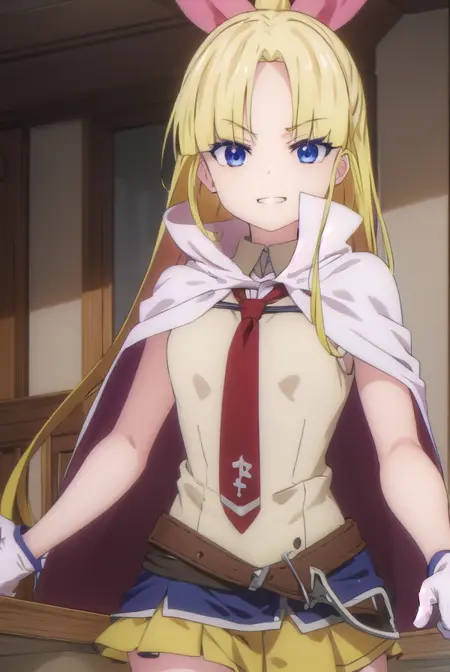 skirt, gloves, necktie, sleeveless, belt, white gloves, cape,