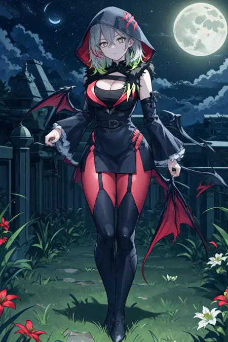 후드, 하프 마스크, 공식 의상 태그를 사용하여 옷과 마스크와 같은 공식 액세서리를 제어할 수 있으며, 샘플 이미지에서 확인할 수 있습니다.
