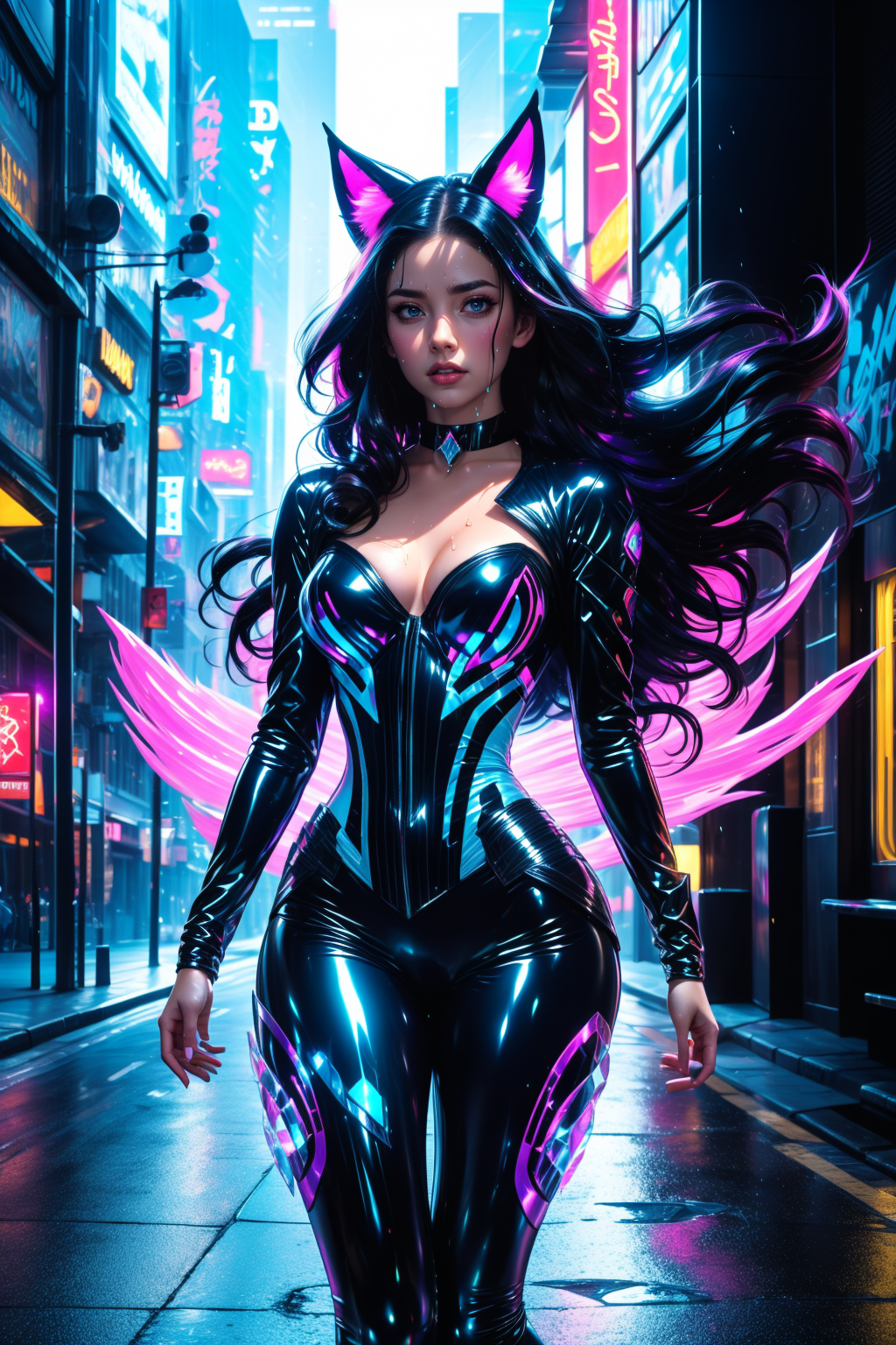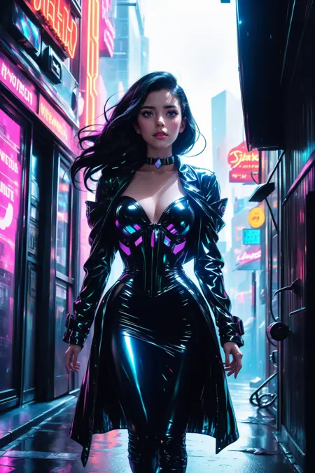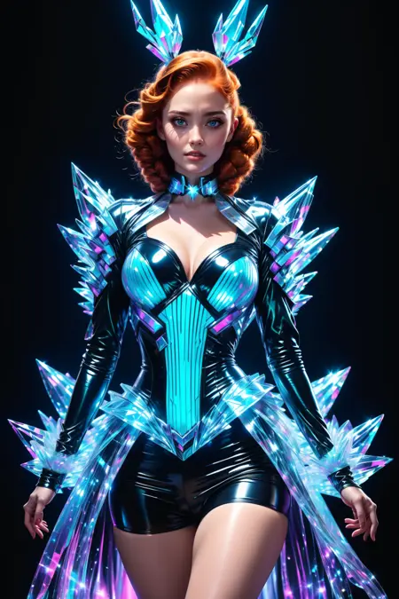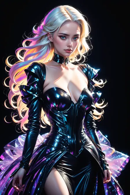 dr3ss, (latex glitch crystal neon bodysuit), choker, sleeves