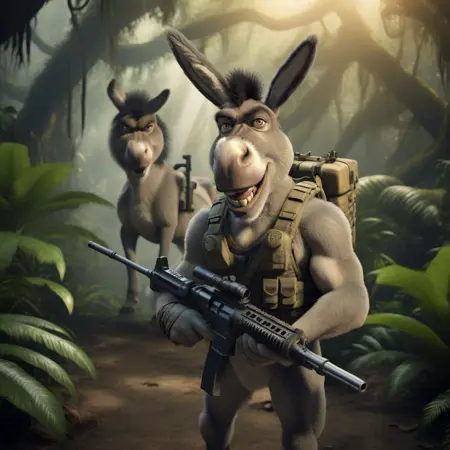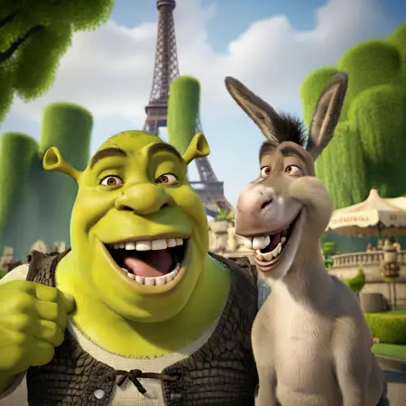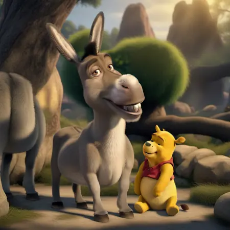 Donkey is a fictional character created by William Steig and adapted by DreamWorks Animation for the Shrek franchise. He is voiced primarily by Eddie Murphy. Donkey is an anthropomorphic donkey and his appearance is modeled after a miniature donkey named Perry. He is depicted with grey fur, brown eyes, and a black mane. In the franchise, he is the sidekick and best friend of Shrek, husband to Dragon, and father to a litter of Dronkeys (Dragon-Donkeys). As the series' comic relief character, Donkey is well-regarded by critics for his wit, wisdom, and humor.