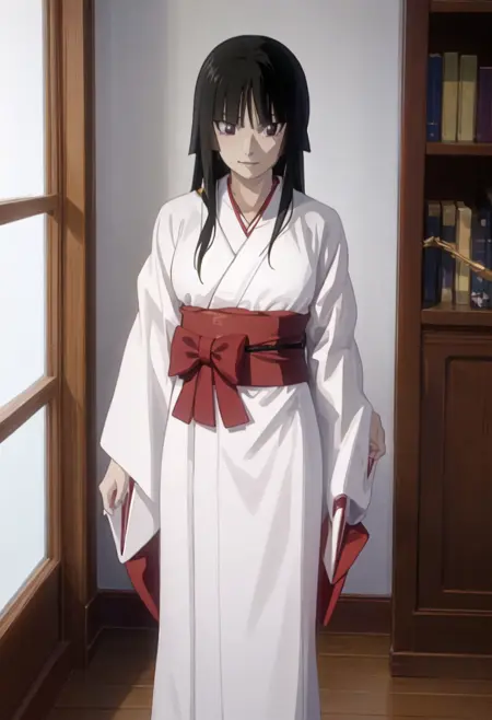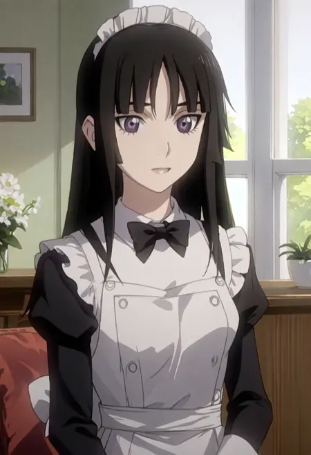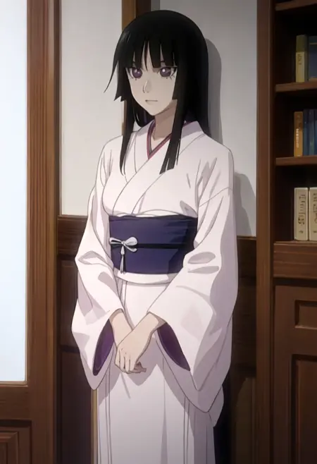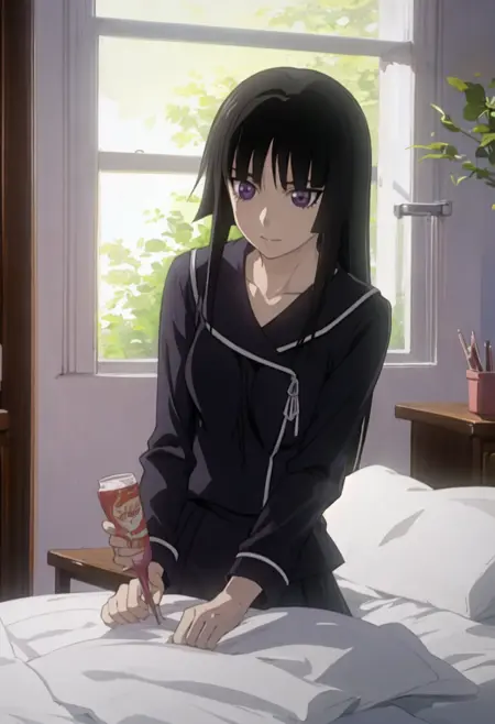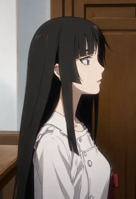 - The pruned character tags are black_hair, long_hair, bangs, blunt_bangs, purple_eyes, hime_cut. You can add them into prompts when core features (e.g. hair color) of character is not so stable.