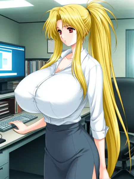 에로게「XENON 꿈의 신체」에서 트레이시의 LoRA입니다. 가장 좋아하는 캐릭터라 만들어봤습니다. 무엇보다도 놀라운 건 가슴입니다. 트레이시 씨, 당신의 버스트는 정확히 몇 센티미터나 될까요? 저는 이 캐릭터가 에로게계에 처음으로 '초대형 가슴'이라는 개념을 도입한 인물이라고 생각합니다. 헤어스타일은 금발 풀티, 롱헤어이며, 안경을 쓴 상태와 안 쓴 상태의 장면이 있습니다. 그리고 트레이시라고 하면 젖입니다. 임신하지 않았는데도 젖이 빔처럼 튀어나옵니다w