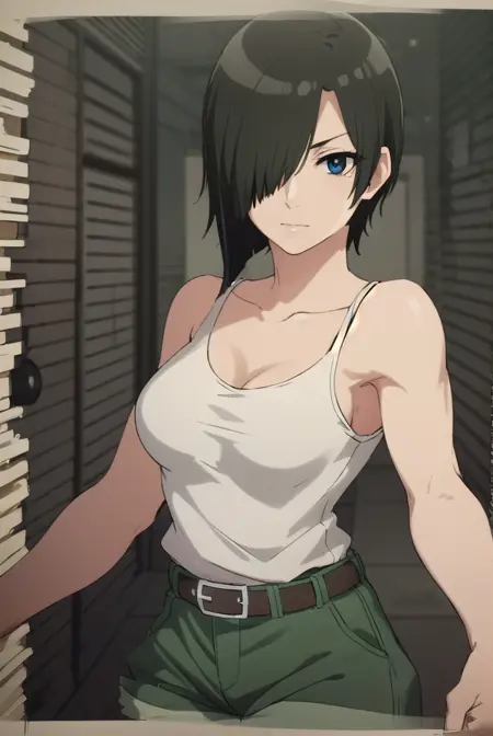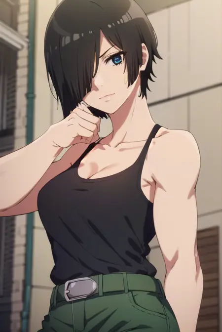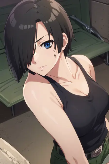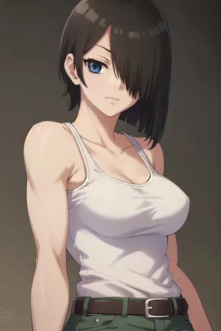 nk cell, 단발, 검은 머리, (한쪽 눈에 머리카락 덮임:1.5), (검은 눈:1.3),