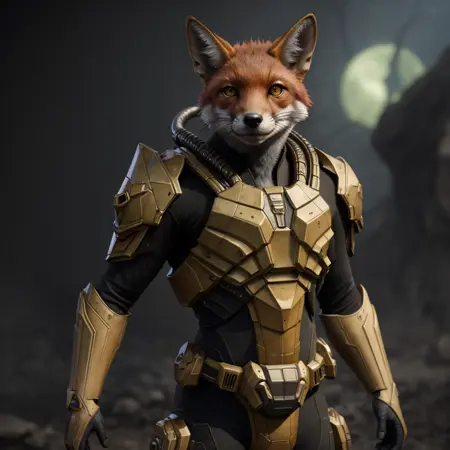 1 - a fantz (creature:0.4)|fox:0.5) portrait with a scfi costume, dynamic composition, cinematic lighting, warm and vibrant colors, art by Sam Weber and Michael C Hayes, 8k, trending on artstation, hyper detailed, cinematic, lora:Creature_Design2_V1:0.9