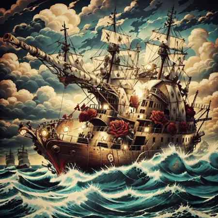 Good trigger words are lightning bolt, skeletons, roses, terrapin, ship of fools and bears. For the best results as a style I'd recommend using a depth controlnet reference image of whatever object you're trying make and playing around with the end steps