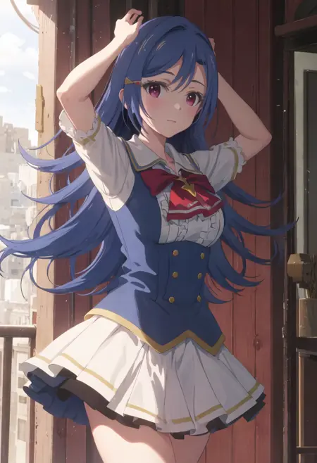 - 精简后的角色标签为:long_hair、blue_hair、hair_ornament、hairclip、purple_eyes、bangs、hair_between_eyes。当角色的核心特征(例如发色)不够稳定时,您可在提示词中添加这些标签。