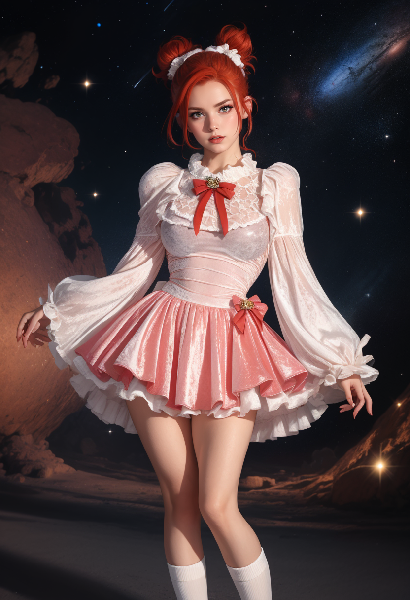 This one has a straightforward aim: Crushed Velvet is it's name. Sticking to the base prompt is lame, I can't stop you from being tame - you'll only have yourself to blame. If you're lucky in your prompting game, a fuzzy coat might adorn her frame.