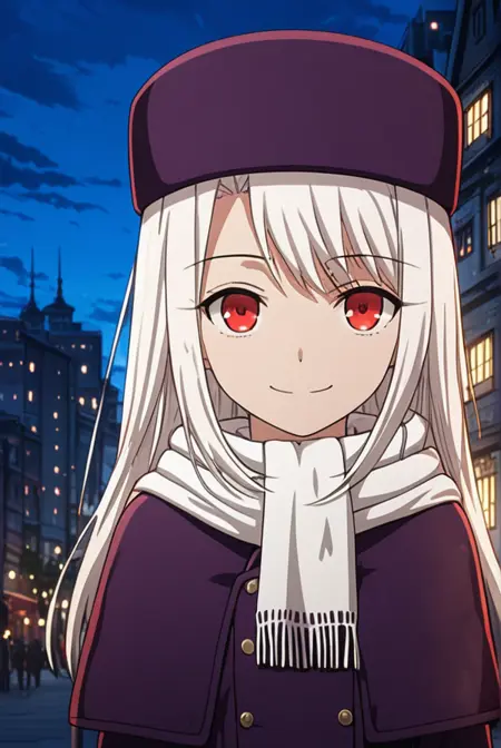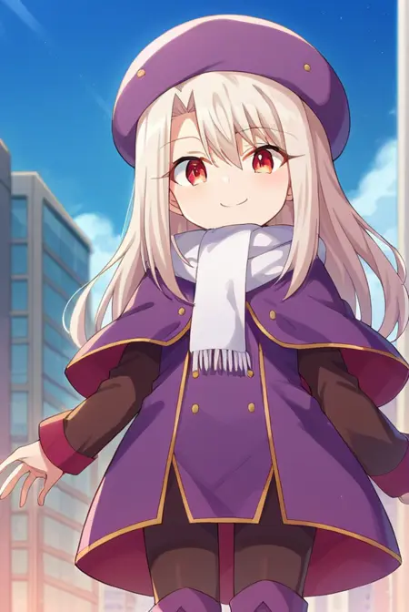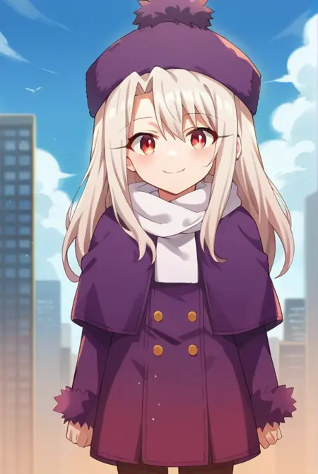 | トレーニングワード | illyasviel von einzbern, long hair, (red eyes:1.5), white hair,コピーしました! skirt, shirt, long sleeves, boots, ascot, white skirt, frilled skirt, purple shirt,コピーしました! hat, boots, scarf, coat, capelet, white scarf, purple headwear, fur hat, papakha,コピーしました! |