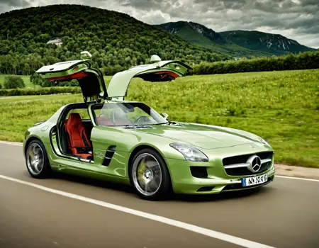 Mercedes SLS AMG 2011. Trained using 52 high-quality photographs. Without signatures, because of this, the doors open and close spontaneously.