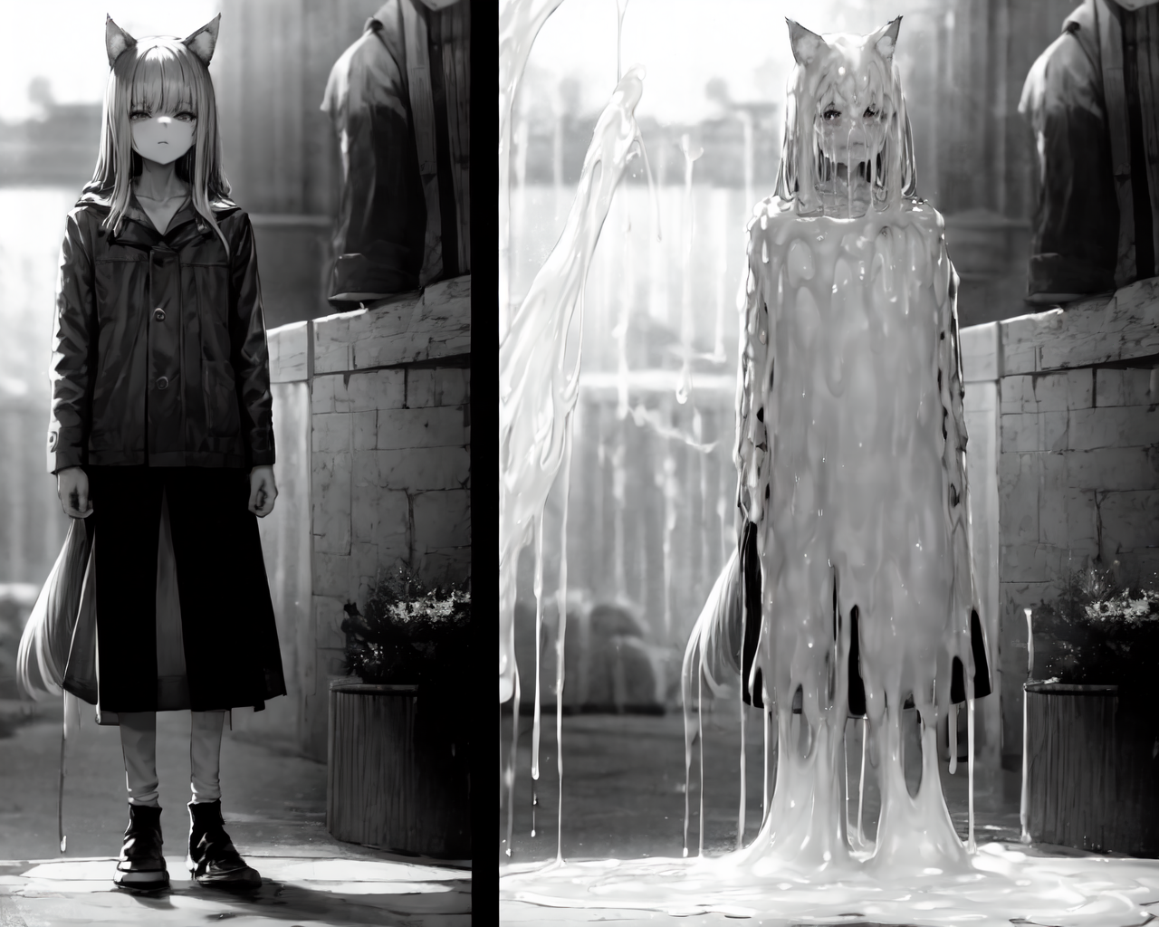Trained on about 200 images each consisting of one image before and one after bukkake, next to each others, from pixiv galleries and game cgs. Most of them are very similar other than the cum and maybe the expression, but a few have a different pose. Similarly, the lora usually outputs nearly identical pose and such, but is able to sometimes do something interesting like a comic, timelapse progression, or pose change.