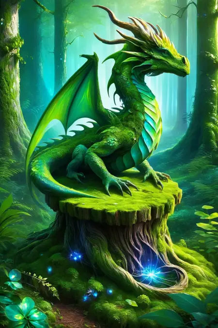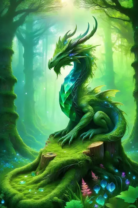 swirling dragon, crystalline dragon, mystic dragon, mythical dragon, forest guardian