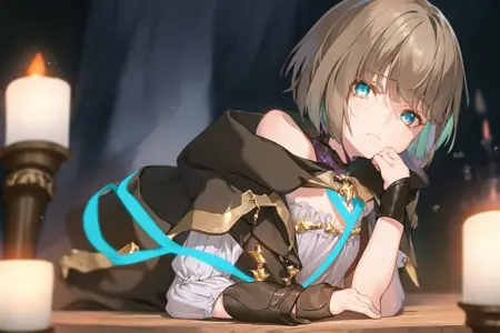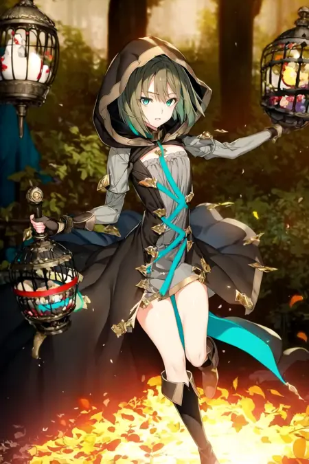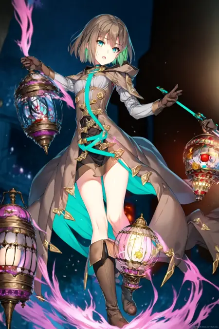 Gretel (SINoALICE) teal eyes, short hair, bob hair, brown boots