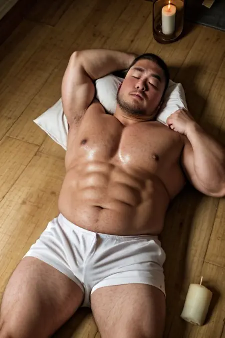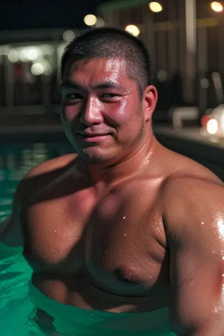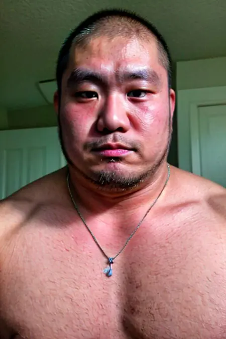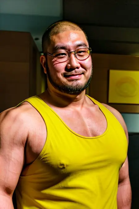 General Look: Shaved head, Japanese, smooth body, muscular chubby / musclechub, kind face, innocent face.