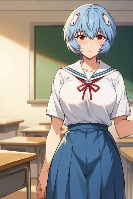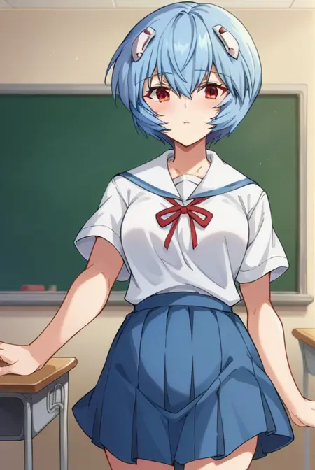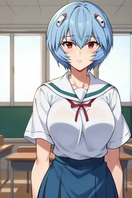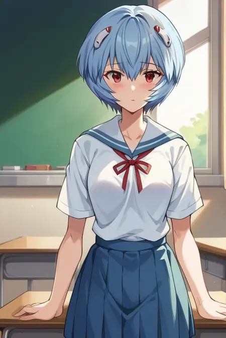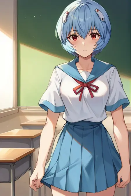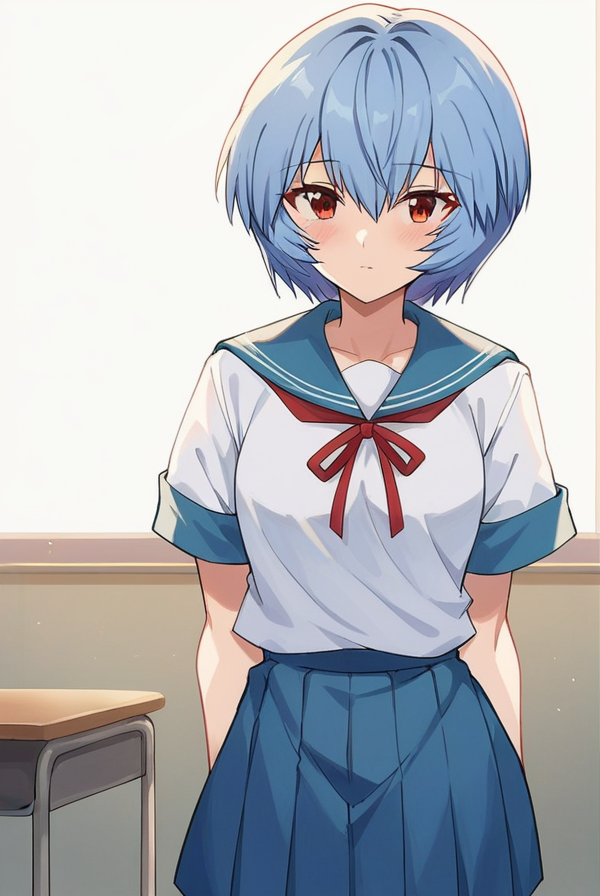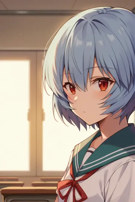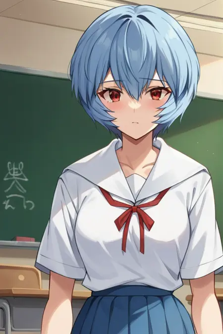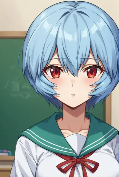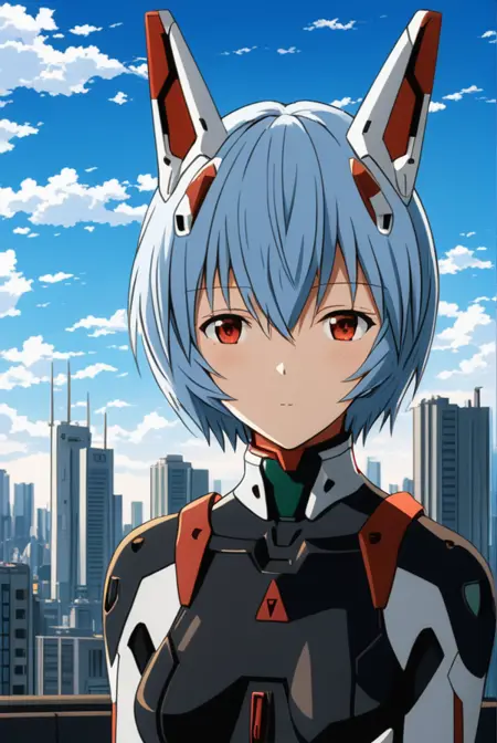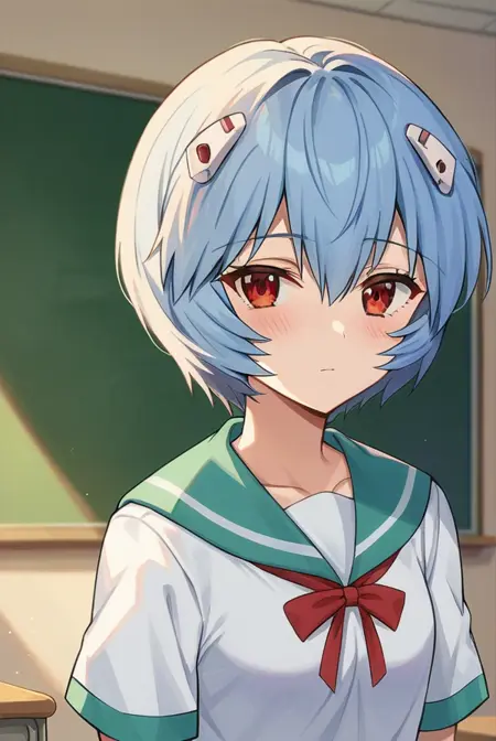 rei ayanami, (ayanami rei:1.2), blue hair, short hair, (red eyes:1.3),